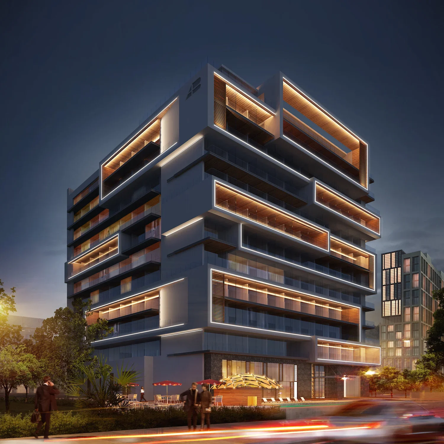 DYNAMICSOLARLIGHTINGDynamic fixtures at rest below the surface during the daylight and emerge at nightfall to illuminate the exterior elements
